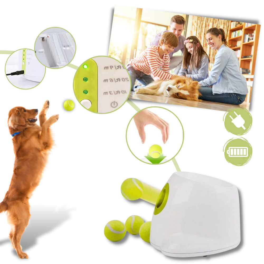Unser Dog Ball Launcher ist darauf ausgelegt, endlose Unterhaltung zu bieten. Er ist mehr als nur ein Spielzeug; er ist ein Tor zu unendlichem Glück, das Ihr Haustier aktiv, interessiert und zufrieden hält. Mit unserem Launcher an der Seite Ihres Haustiers kann der Apportierspaß jetzt endlos sein. Es ist nicht nur körperliche Bewegung; es schafft eine starke Verbindung zwischen Ihnen und Ihrem Haustier und macht jedes Spiel zu einem gemeinsamen Abenteuer. Es ist mehr als nur ein Spielzeug; es ist eine Glücksmaschine, wie das Lachen und die Begeisterung zeigen, die es in Ihr Zuhause bringt.