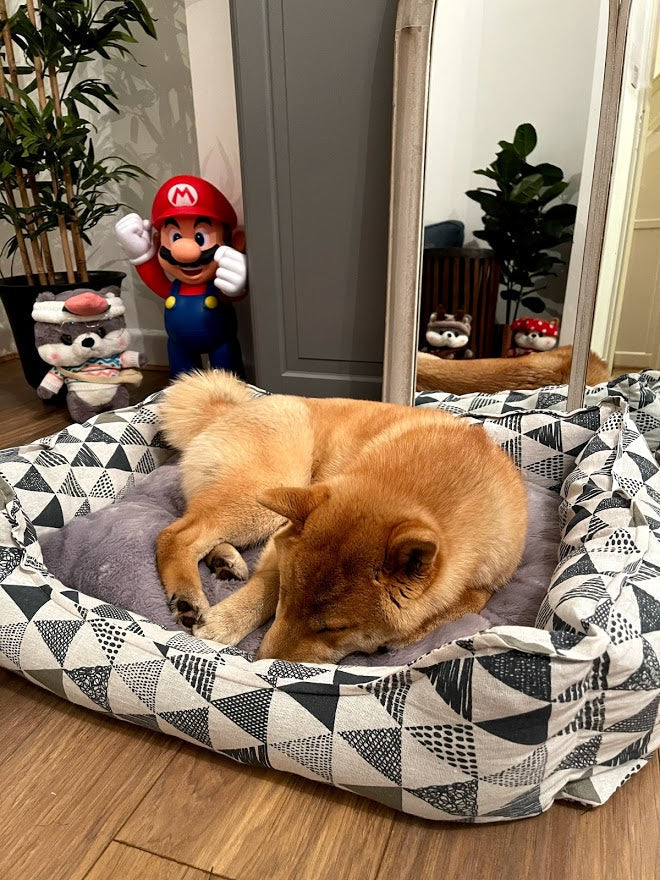 • Jedes Bett wird mit einem abnehmbaren Plüschkissen geliefert (eine Seite mit Pyramidenmuster und die andere in einem weichen Grau, wie abgebildet)