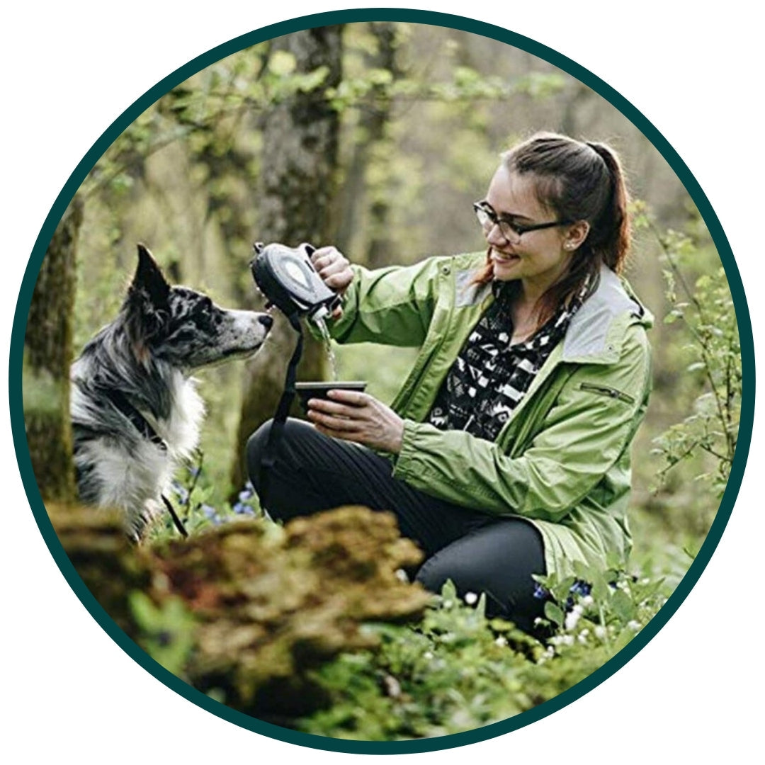 The Aqua Leashes built-in water storage saves you from carrying an additional water bottle on your walks