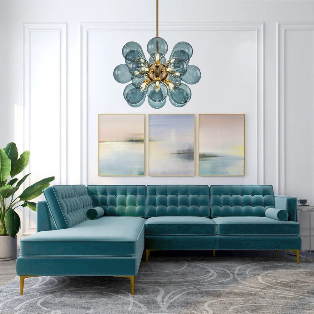 • Contemporary Aesthetic: With its sleek lines, minimalist silhouette, and handcrafted glass shades, this chandelier embodies contemporary elegance. The combination of modern design elements and artisanal craftsmanship results in a versatile lighting fixture that complements a wide range of interior styles, from chic urban lofts to sophisticated suburban homes.
