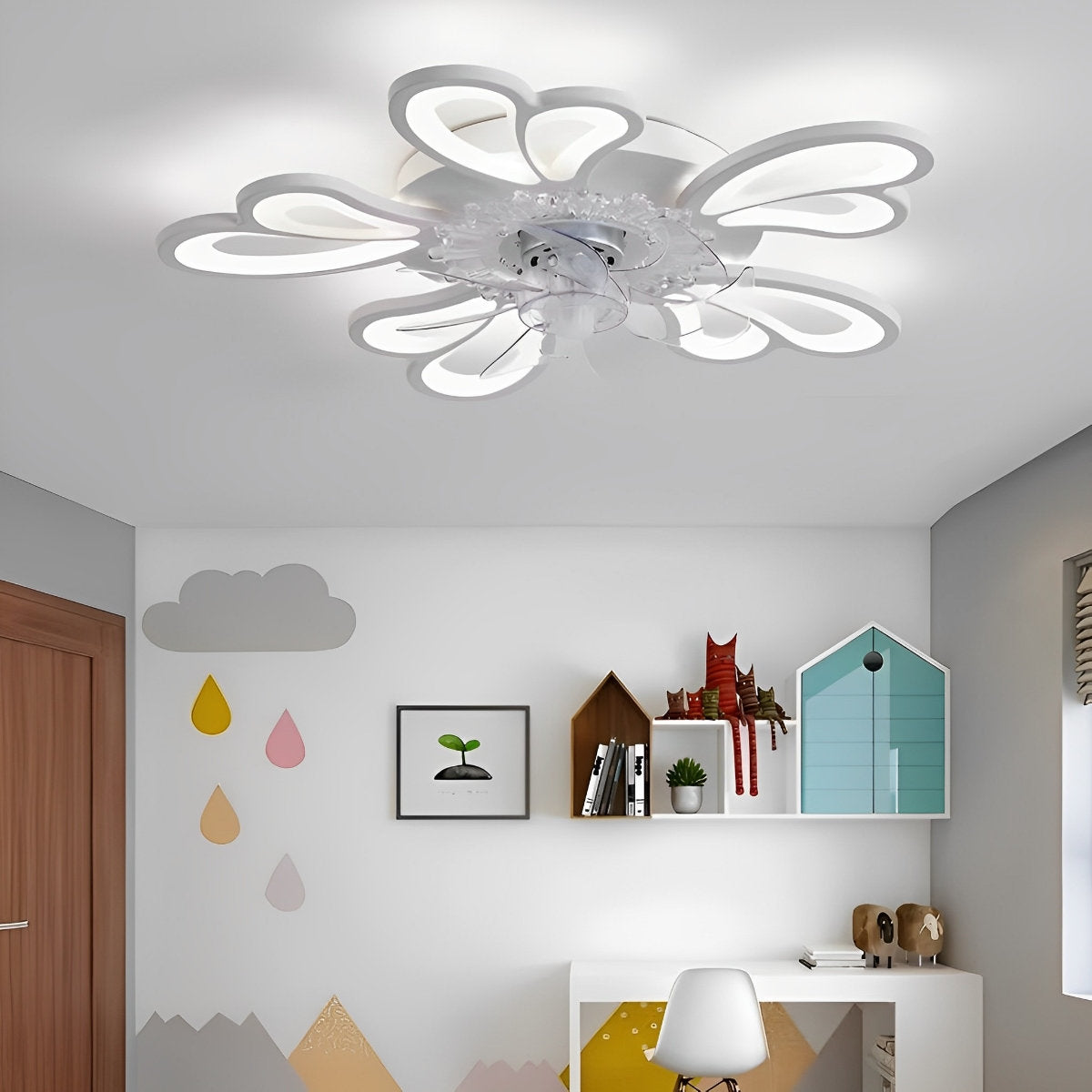 Creative Flower Shaped Three Step Dimming LED Ceiling Fan Lights Chandelier