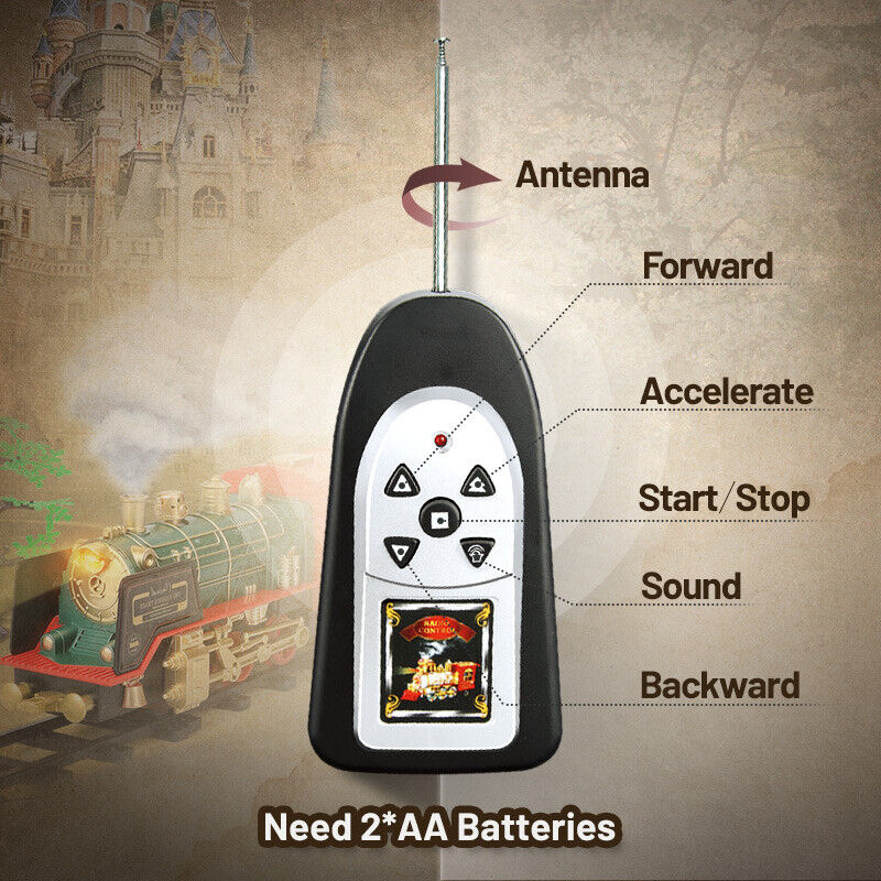 Remote Control Vintage Classic RC Train Toy Set with Real Smoke, Lights, Sound