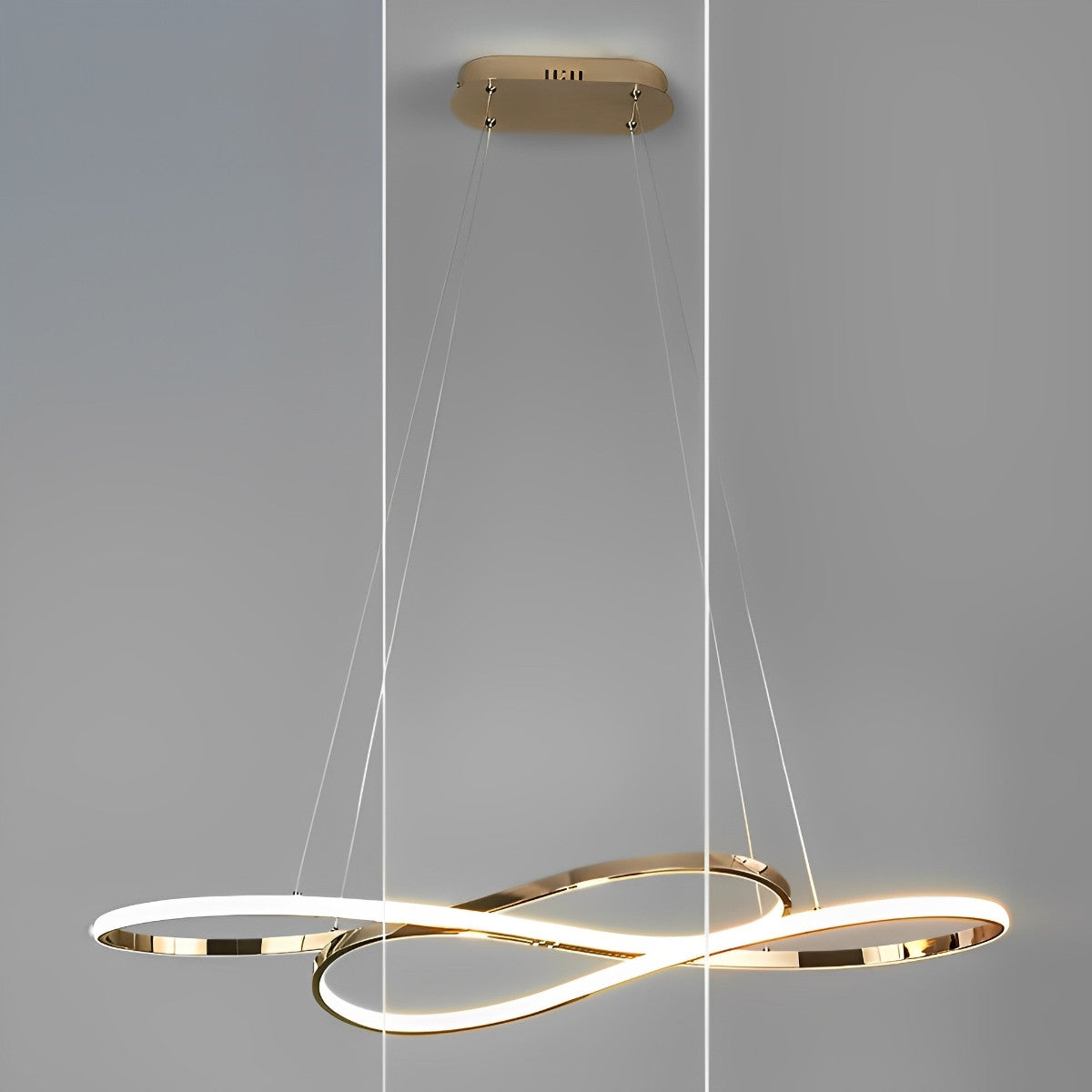 Channel your inner creativity and art enthusiast with this amazing wavy 8-shaped LED chandelier hanging lamp ceiling light. Its unique shiny design can bring a lively vibe to any atmosphere and bring you to the present moment. It looks like a piece of jewelry. It will be your favorite thing to look at all the time in your home. You can control its brightness or temperature to match different types of occasions and your lighting needs.
