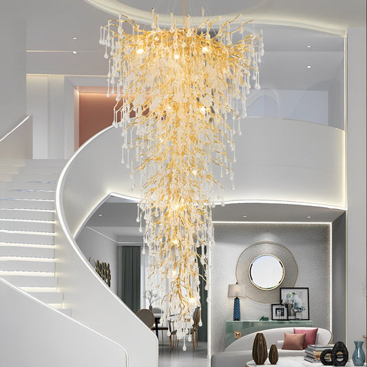 Modern Luxury Gold Tree Branch Teardrop Waterfall Chandelier Lights