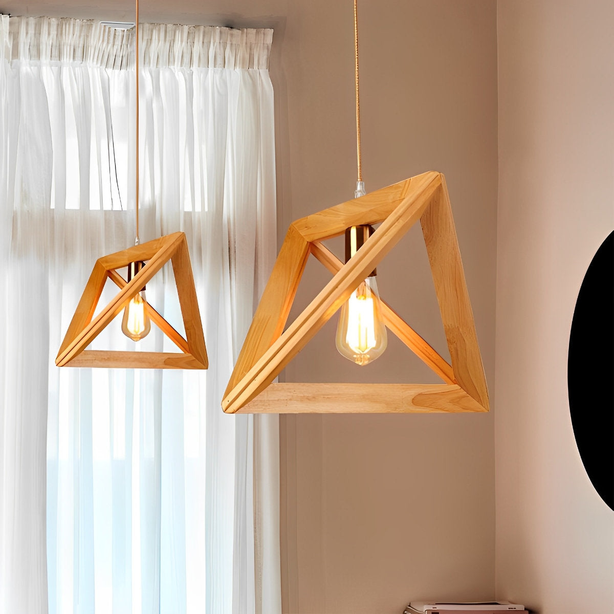 Creative Wood Frame Geometric Minimalist Chandelier Ceiling Pendant Lamp