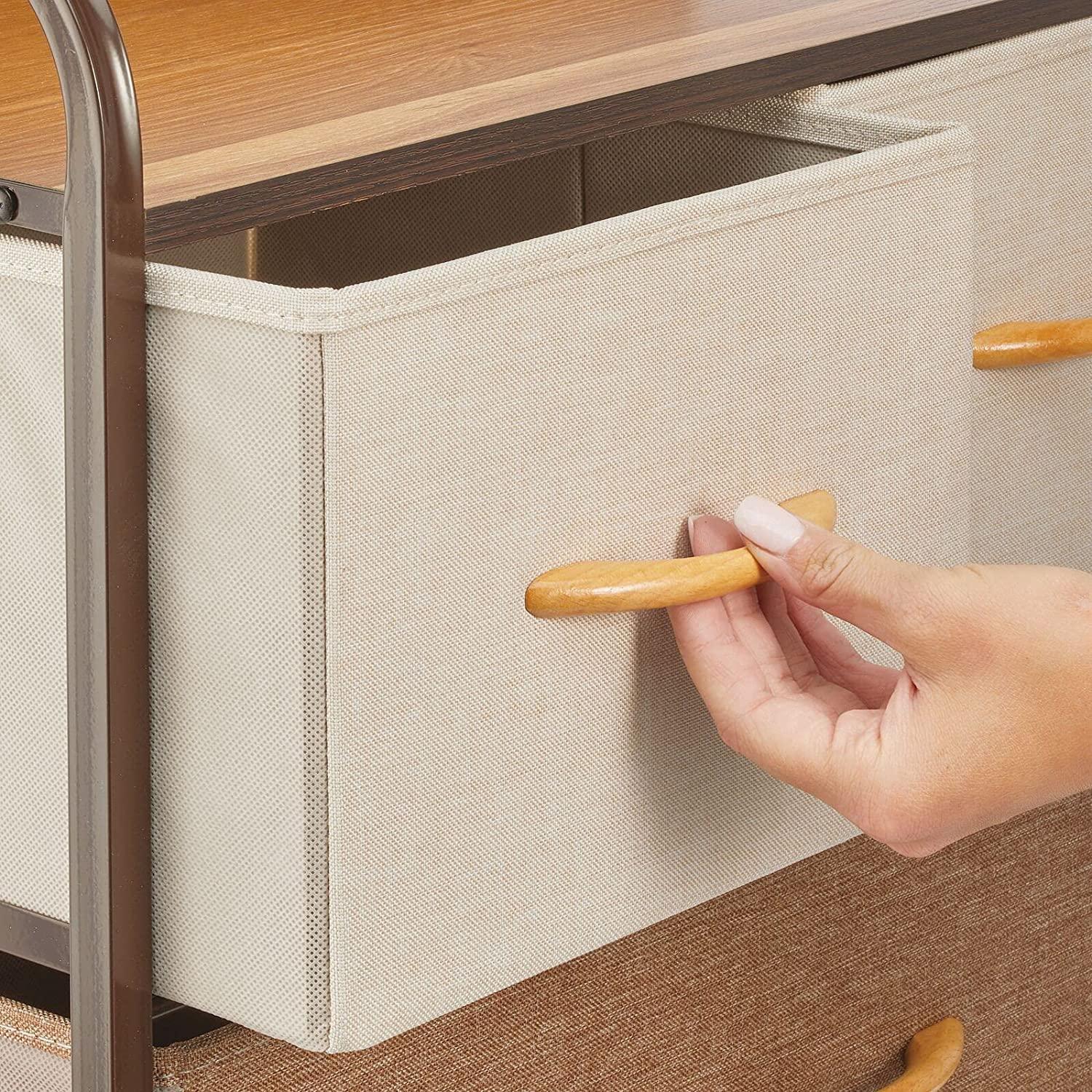 An organization enthusiast would like to fill every drawer with clothes, linen, and Knicks from home. The lightweight frame makes the unit easy to transport, and when not in use, just fold up the fabric drawer for storage.