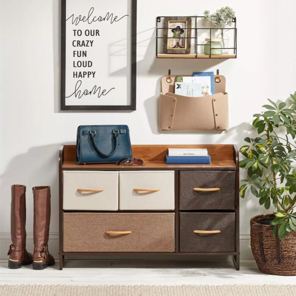Try our minimalistic fabric dresser to provide a comfortable foothold for your family necessities.