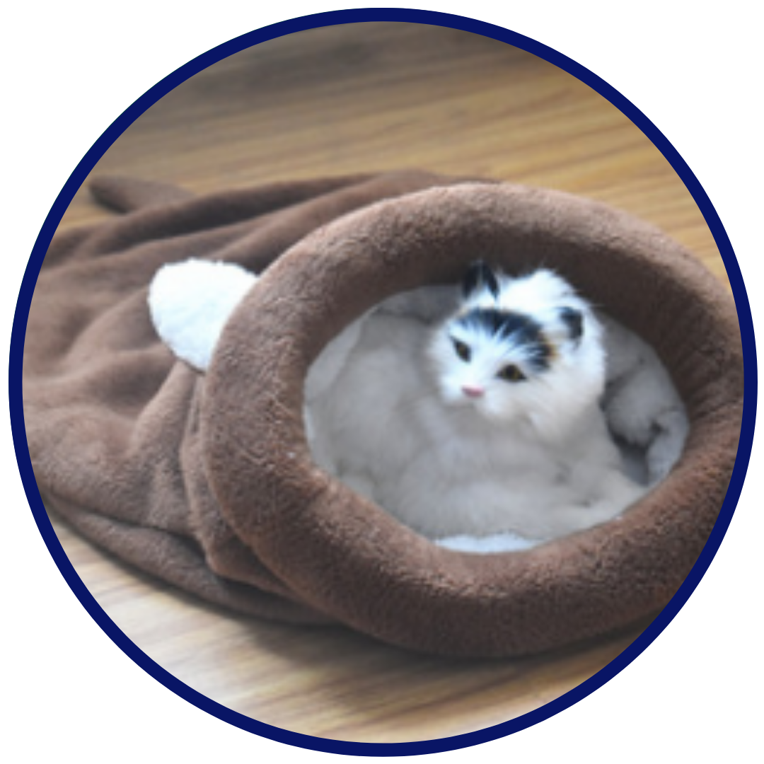 Introducing the "Kitty Sleeping Bag" - a cozy haven designed exclusively for our feline companions. Perfect for homes with dogs, this sleeping bag offers a peaceful retreat for your cat, ensuring they feel secure and undisturbed even in a bustling dog-friendly environment.