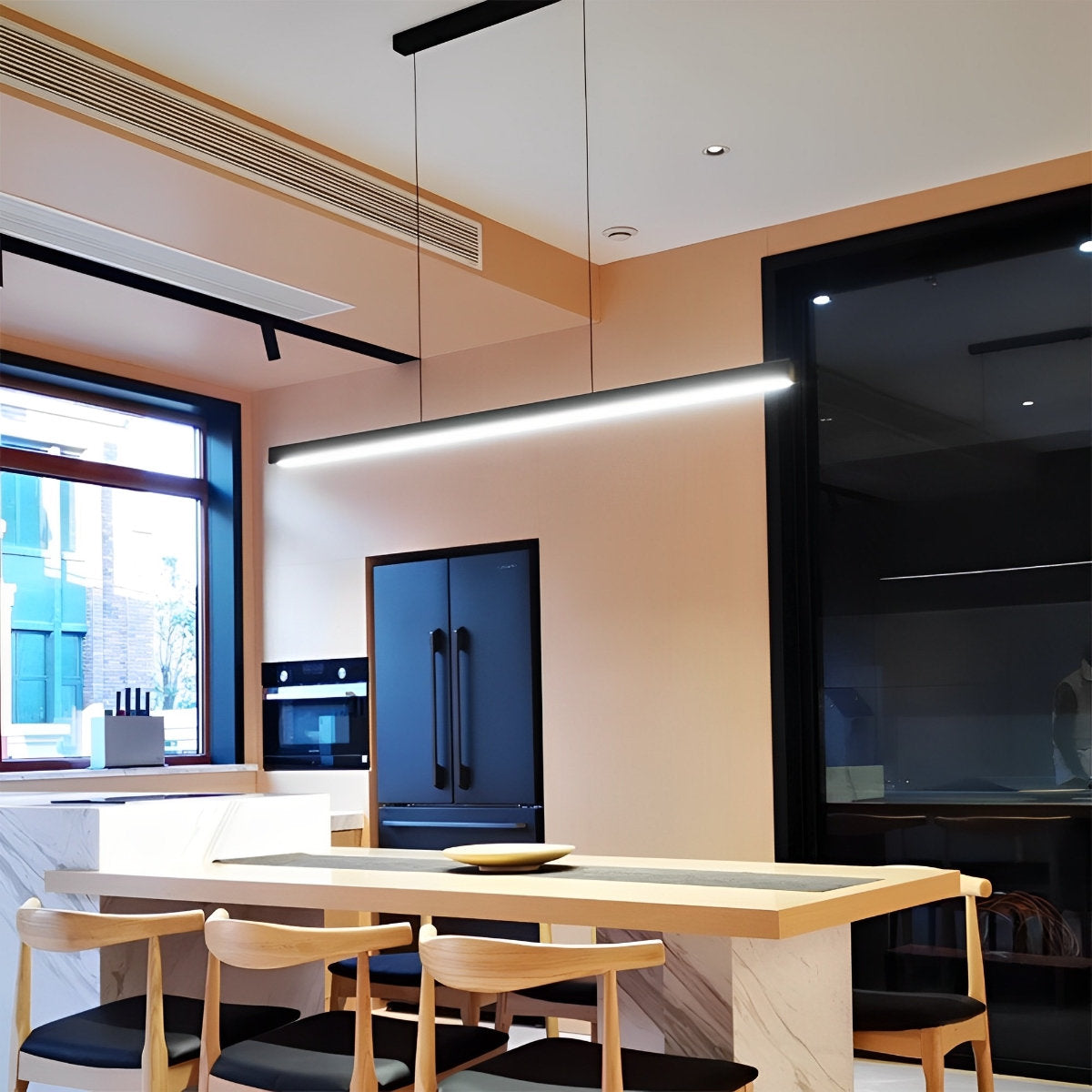 Solve your lighting problems with this amazing long-strip linear bar chandelier ceiling hanging pendant light lamp. It is a perfect option for illuminating the kitchen island or dining room with a bright and on-point light. The minimalist design allows you to light up the space without overdoing it or making the decor look overbearing. Moreover, it will serve you for a long time because it is made with durable corrosion-resistant, and is not easy to deform material.