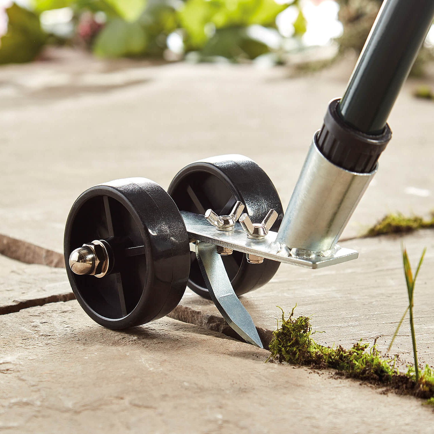 Remove unwanted, overgrown weeds by their roots; no kneeling, bending, or dangerous chemicals are needed. To eliminate weeds, just roll the paver blader over them. Comes with as two interchangeable blades to clear gaps in patios, walkways, and decks—one for big cracks and the other for narrow ones.