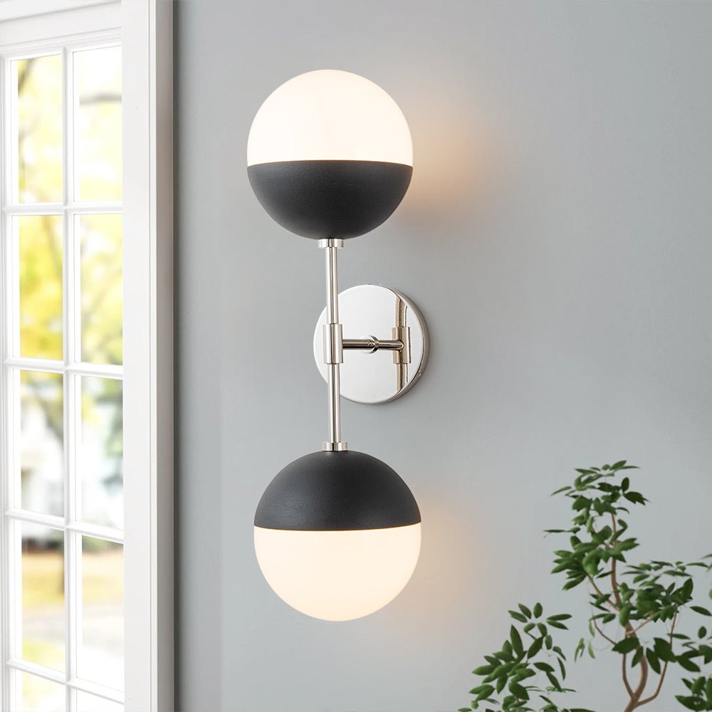 In summary, the Mid-Century 2-Light Opal Glass Globe Linear Wall Sconce offers a perfect blend of retro-inspired design and modern functionality. With its opal glass globe shades, two-light configuration, linear frame, versatile placement options, and easy installation, it's an elegant and practical lighting solution for any interior space.