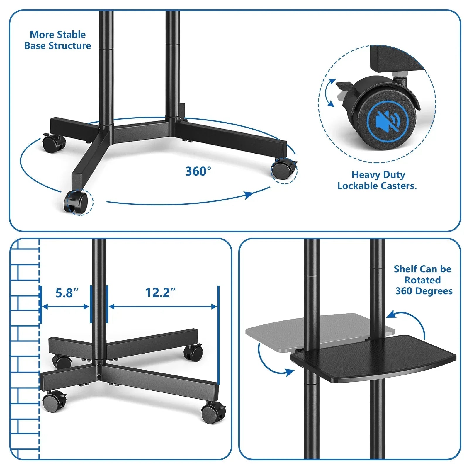 • 4-FOOT WELDED BASE: Provides solid stability, ensuring your TV stays secure, even during movement or adjustments.
