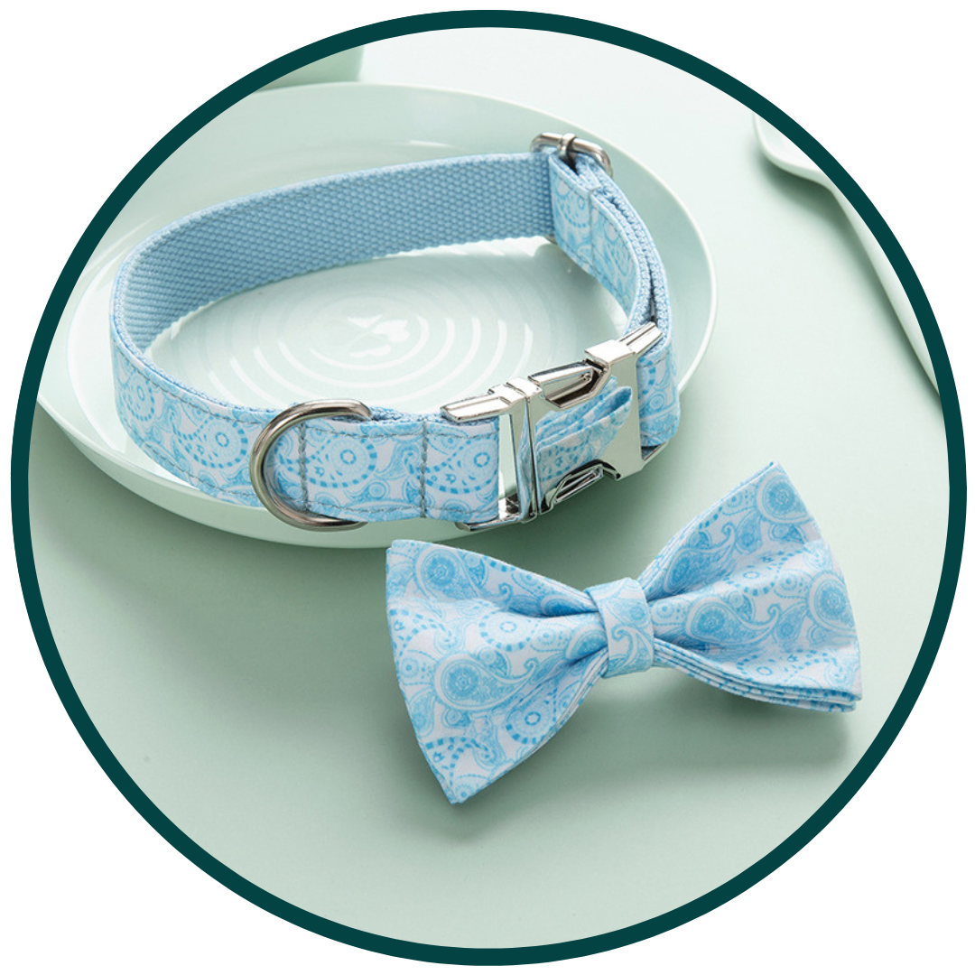 Elevate your dog's style with our Light Blue Print Bow and Collar Set. It's not just an accessory; it's a symbol of your pet's unique personality and your impeccable taste. Order now and let your dog strut in style and comfort!
