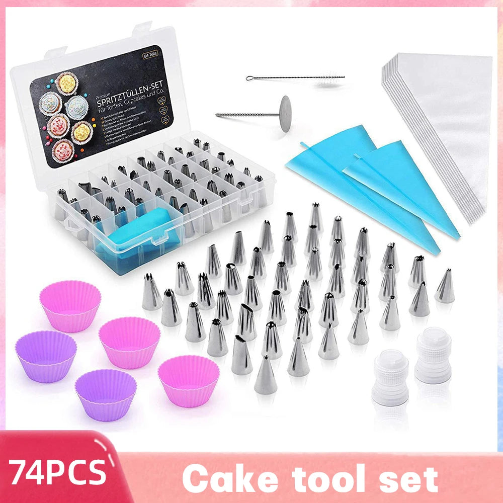 66/74-Piece Professional Cake Decorating Set – Stainless Steel Nozzles & Tools