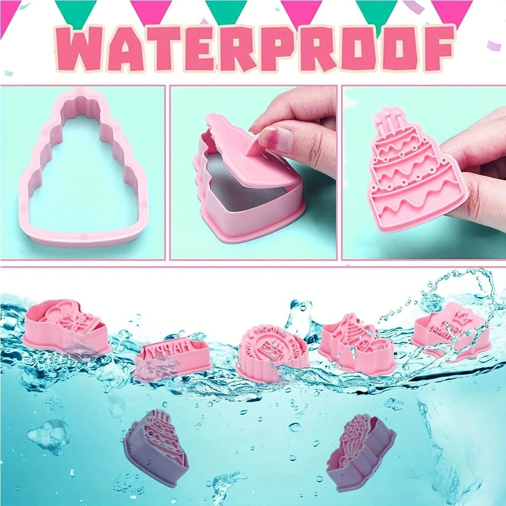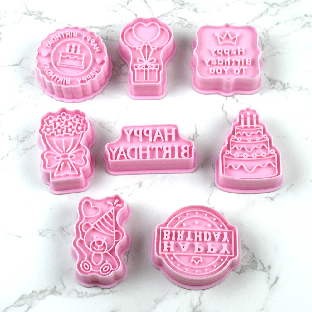 8-Piece Happy Birthday Cookie Cutter Set – Pressable Cartoon Biscuit Molds