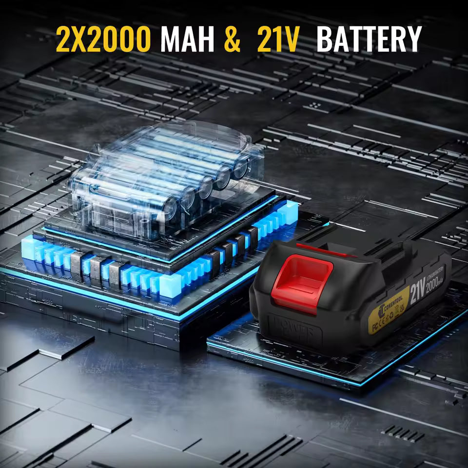 Comes with two 21V 2.0AH rechargeable batteries. Swap and go for uninterrupted trimming—no more waiting for a recharge in the middle of your work.