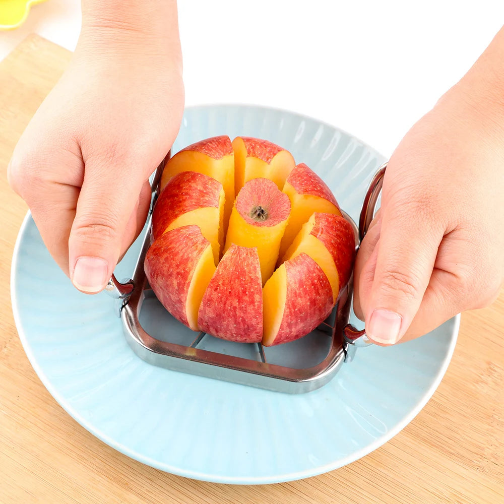 Upgrade your kitchen with this stainless steel fruit & vegetable slicer, designed for quick and precise cutting of apples, pears, potatoes, and more.