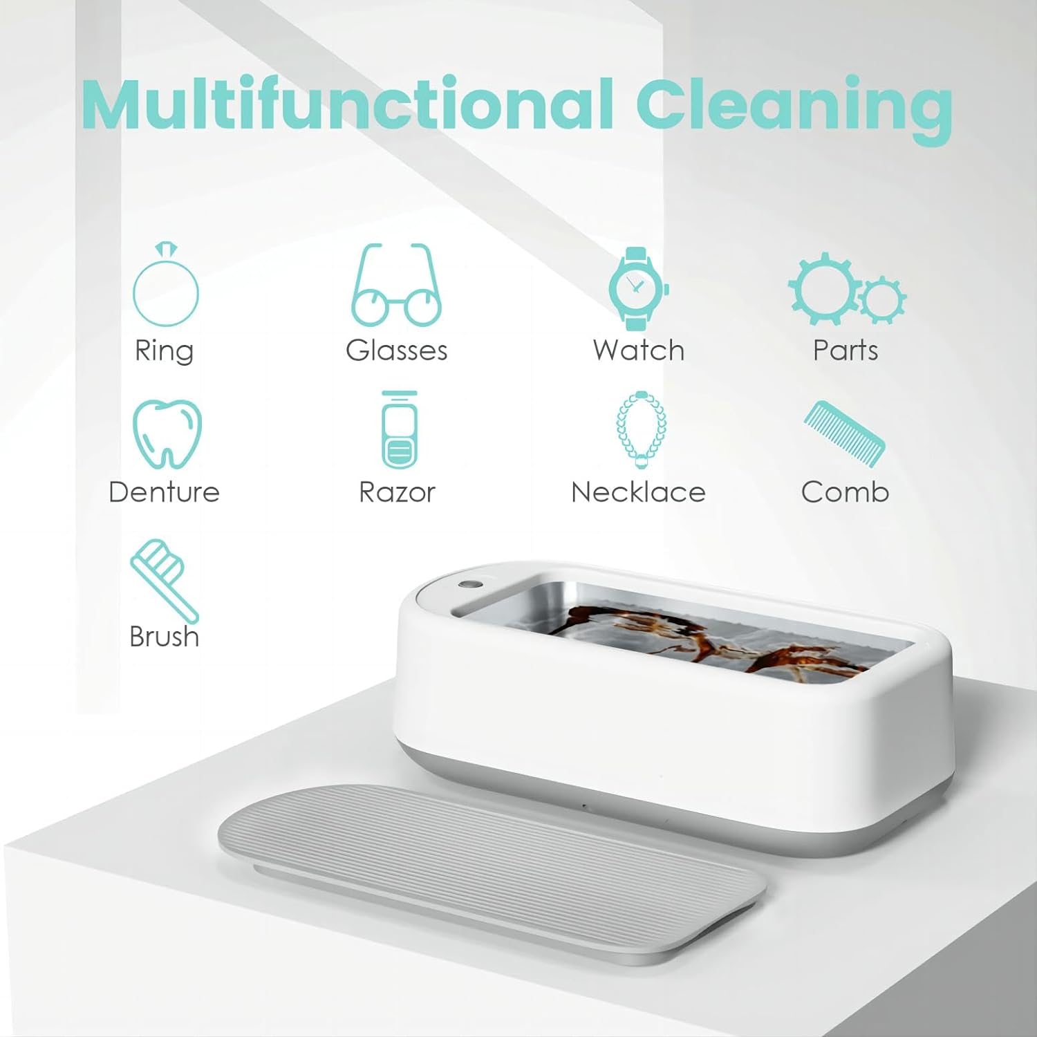 • MULTI-FUNCTIONAL & VERSATILE: Suitable for cleaning glasses, dentures, jewelry, and more, enhancing its utility across different cleaning tasks.